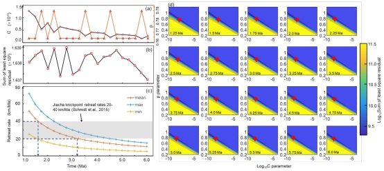 Fig. 1 Knickpoint migration rates in the Layue Basin obtained from the celerity model