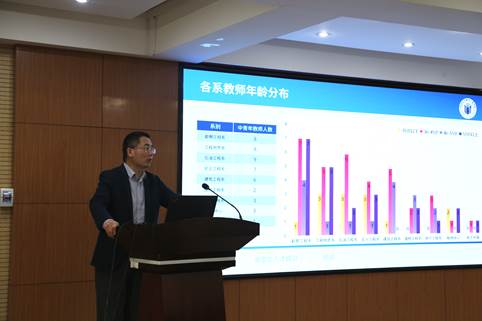 Vice President Cao Pinlu firstly introduced the faculty construction of the college, focusing on the analysis of faculty professional structure, age structure, academic structure, title structure and talent echelon. Through horizontal and vertical data comparison, it clearly showed the advantages and challenges faced by the faculty construction of the college.