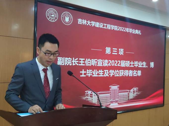On behalf of the faculty, Zhao Yan sent his sincere wishes to the graduates of the class of 2022. He said that although the epidemic has separated everyone in all directions of the country, the campus of JLU is still full of students’ youthful imprints. In JLU, students have not only made great progress in their studies, but also left a strong mark in the historical picture of the development of the college. We are glad for the growth and progress of the students along the way with the college, and we are proud of the students who will go to the society and take up the noble society responsibility. He also sent a message to the students to set off with professionalism and dedication, to devote themselves to the great career of serving the country with science and technology, to set off with trust and responsibility, to embark on the journey of scientific and technological innovation, to set off with boldness and tenacity, and to open a new chapter of life. We will take up the mission of “A great responsibility will come down from heaven”, and in the name of the Construction and Engineering people of JLU, we will strive to be the first and go forward! Help the Chinese giant ship to cut the waves and create a new miracle that will attract the world’s attention in overcoming difficulties!