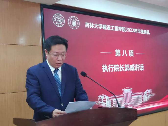 The youth does not disappoint your dream , strive forever like when you are young. At 14:00 on 20th June, 2022, the 2022 Cloud Graduation Ceremony of College of Construction Engineering of Jilin University was held. Yi Changtao, Secretary of the Party Committee of the College of Construction Engineering, Guo Wei, Executive President, Wang Boxin, Cao Pinlu, Zhang Wen and Wu Xinming, Vice Presidents, Wang Qing, Director of the Academic Committee, Chen Baoyi, Director of the Teaching Committee, Hou Chuanbin, Deputy Director of the Oil Shale Industry-University-Research-Use Cooperation and Innovation Base, Talalay, Director of the Polar Center, department chairs and teachers’ representatives attended the offline ceremony, and other teachers of the College, all graduates of the class of 2022 and students’ parents attended online. Deputy Secretary of the Party Committee and Vice President of the College Yan Guodong hosted the meeting.
