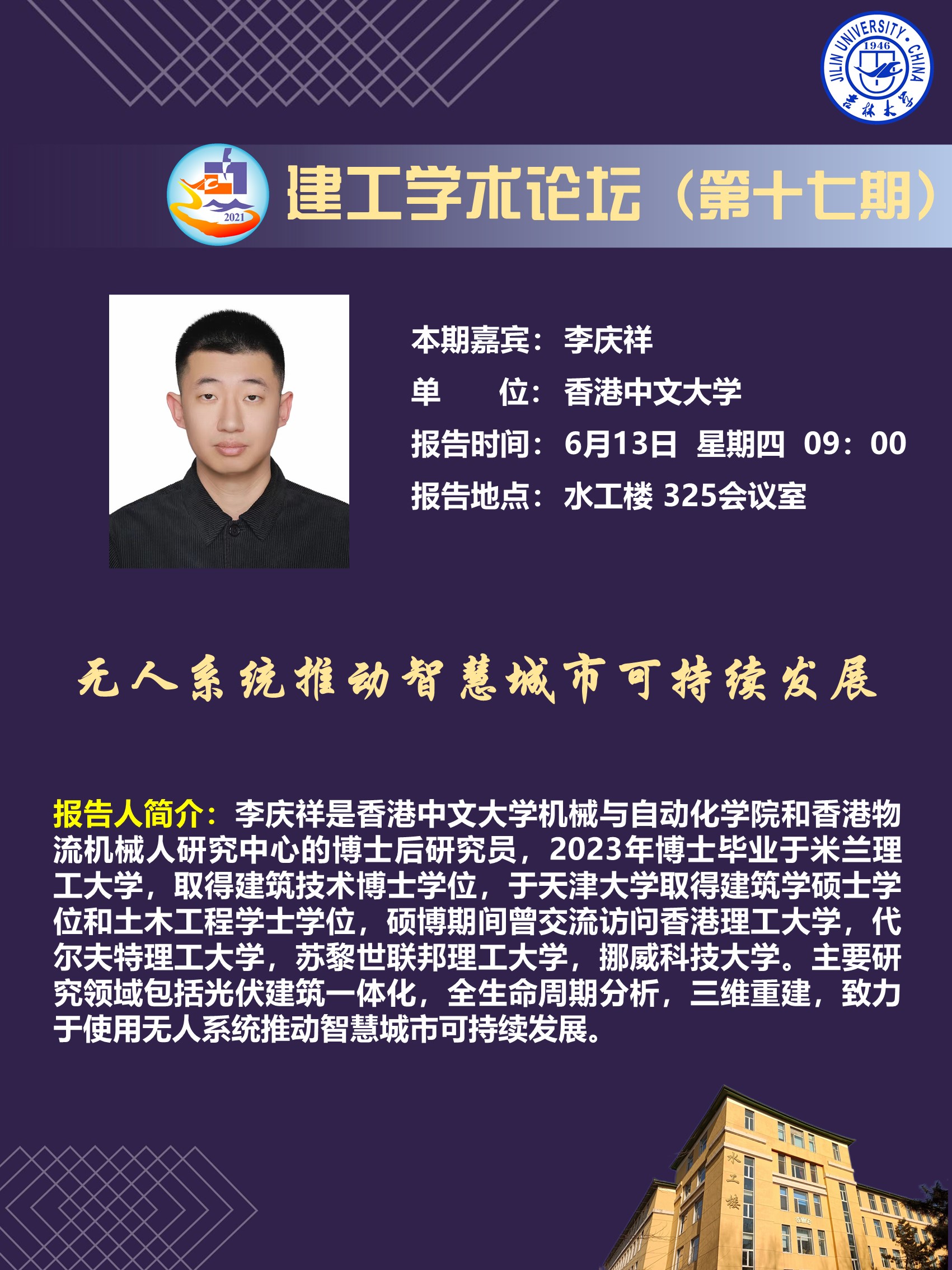 Venue: Conference Room 325, Plumbing Building, Chaoyang Campus, Jilin University, China