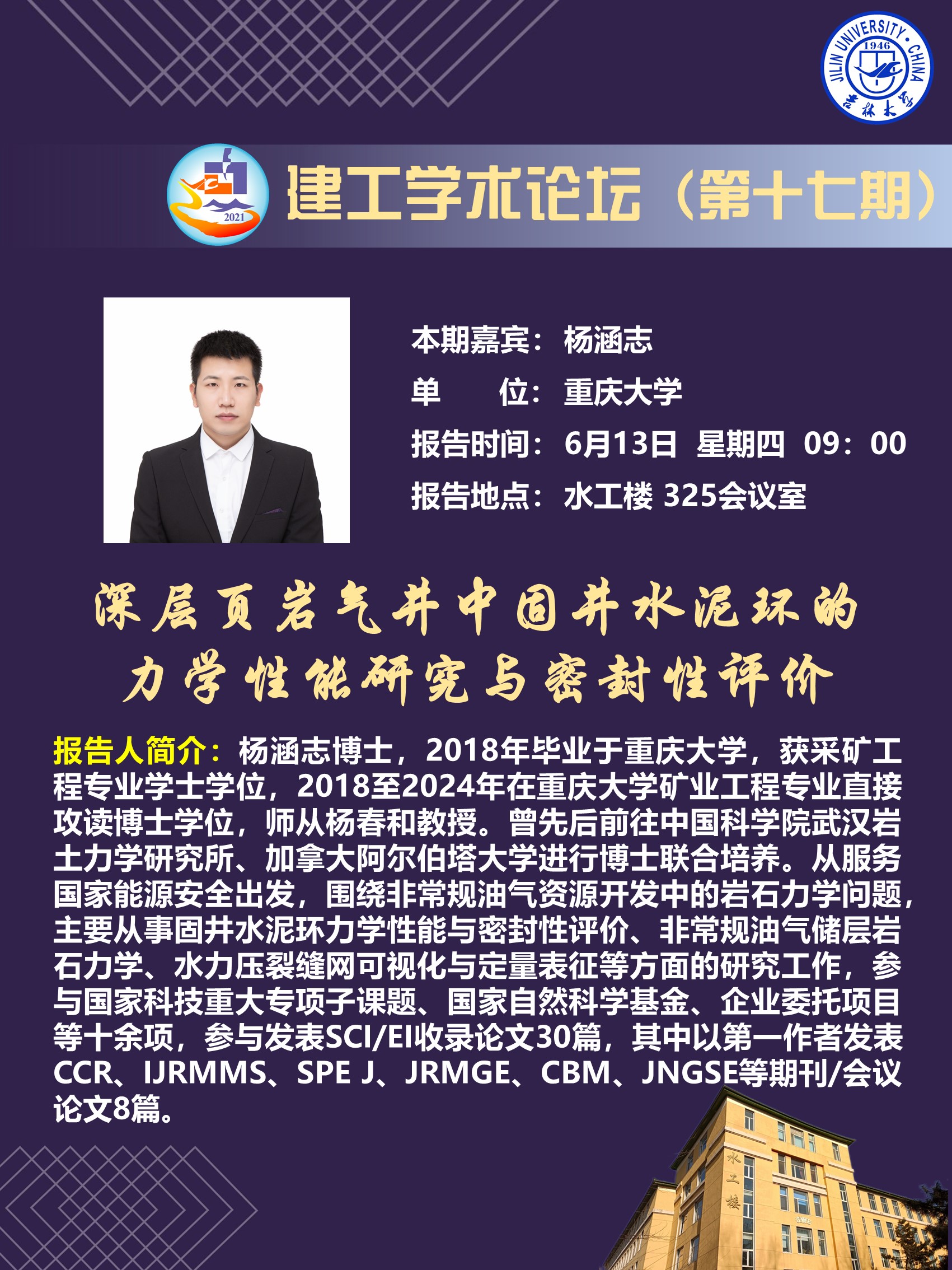 Venue: Conference Room 325, Water Engineering Building, Chaoyang Campus, Jilin University, China