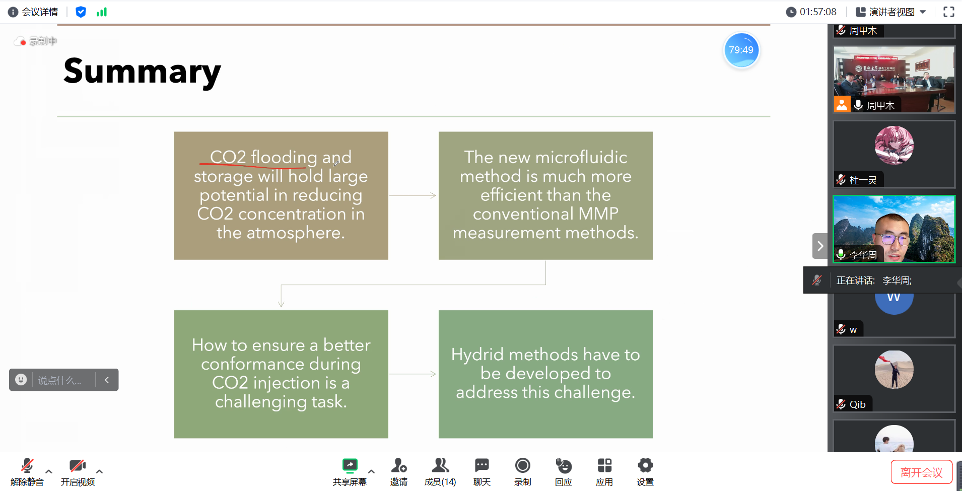 The lecture covered the basic principles of CO2 drive and CO2 storage technology and the various implementation methods derived from it, the field engineering practice of this technology in Canada, and the problems and challenges encountered so far, which are rich in content and broad in scope. After the lecture, Prof LI Huazhou had further academic exchanges and discussions with the faculty and students of our college.