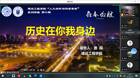 为丰富同学们在校园封闭期间的科学文化生活,提高抗击疫情的信心,BG大游面向全院本科生、研究生推出“众志成城,疫路同行”系列讲座,公司邀请院内外专家每晚19点向同学们传授学科专业知识和人文情怀。3月31日 ,系列讲座第九期讲座由BG大游博士生导师、副教授曹琛老师主讲,讲座主题“历史在你我身边”。讲座由公司研究生综合办公室汤海燕老师主持。