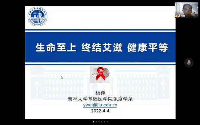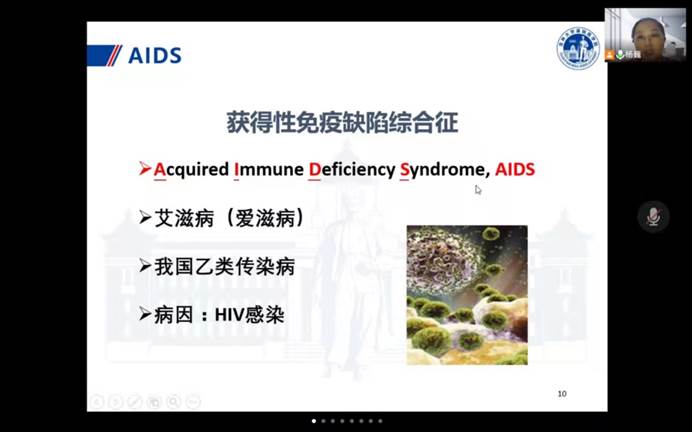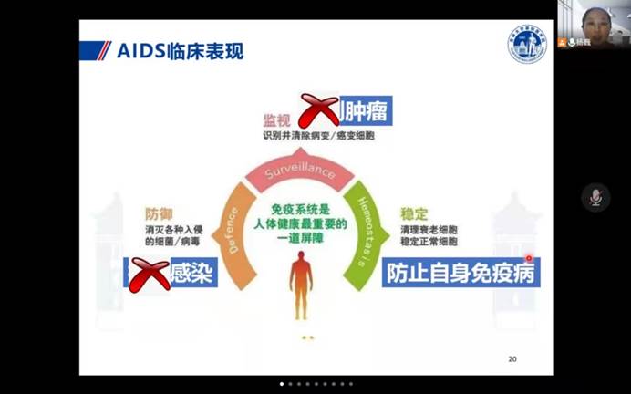 杨巍教授用真实数据展示了艾滋病的现状,并向同学们讲述了预防艾滋病的必要性。随后杨巍教授介绍了预防艾滋病的策略及措施,同时也科普了艾滋病的临床表现、污染源和传播途径等,让大家了解艾滋病的相关知识,减轻同学们对艾滋病感染的恐惧,改变大家以往“谈艾色变”的观念。