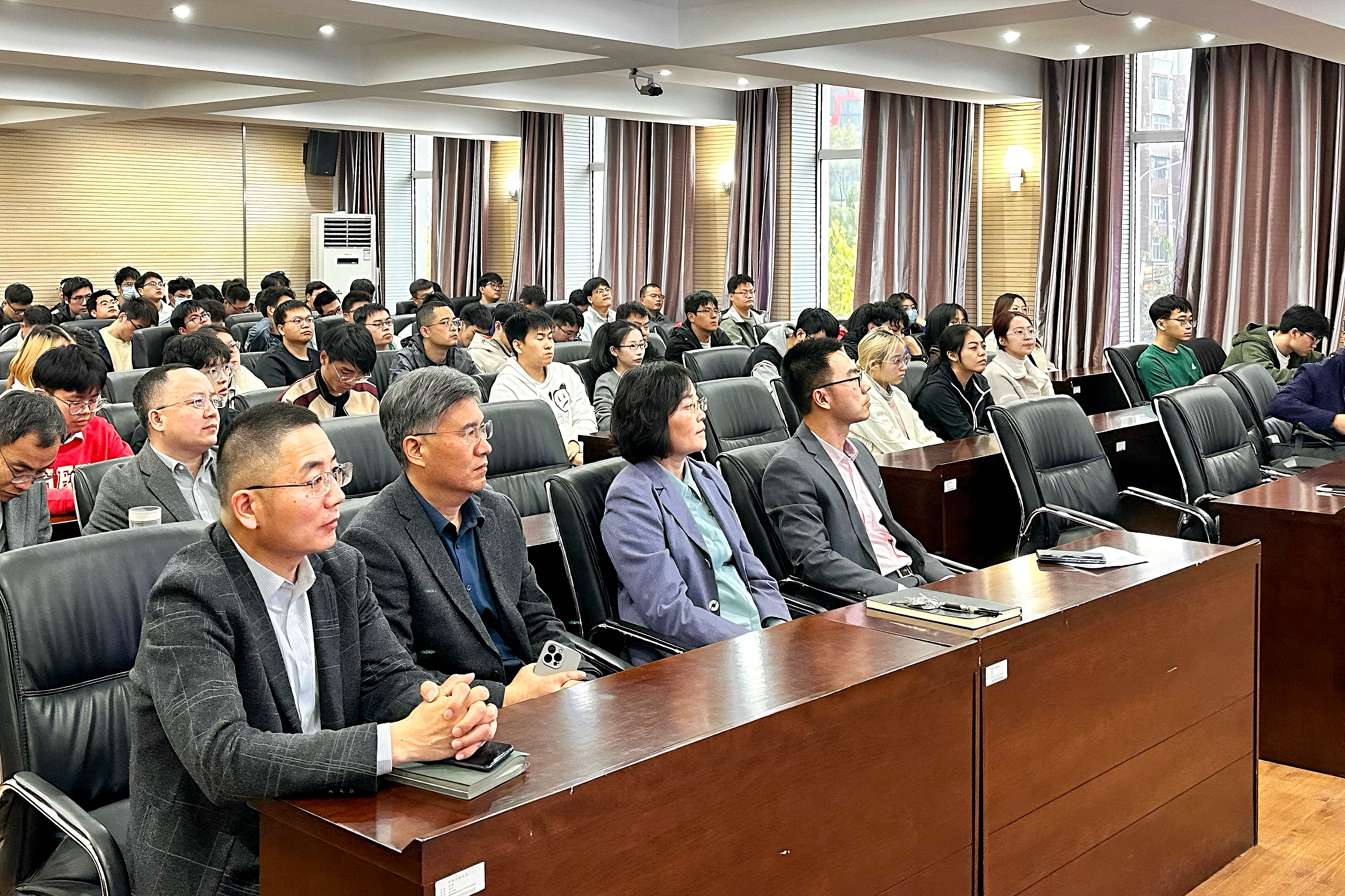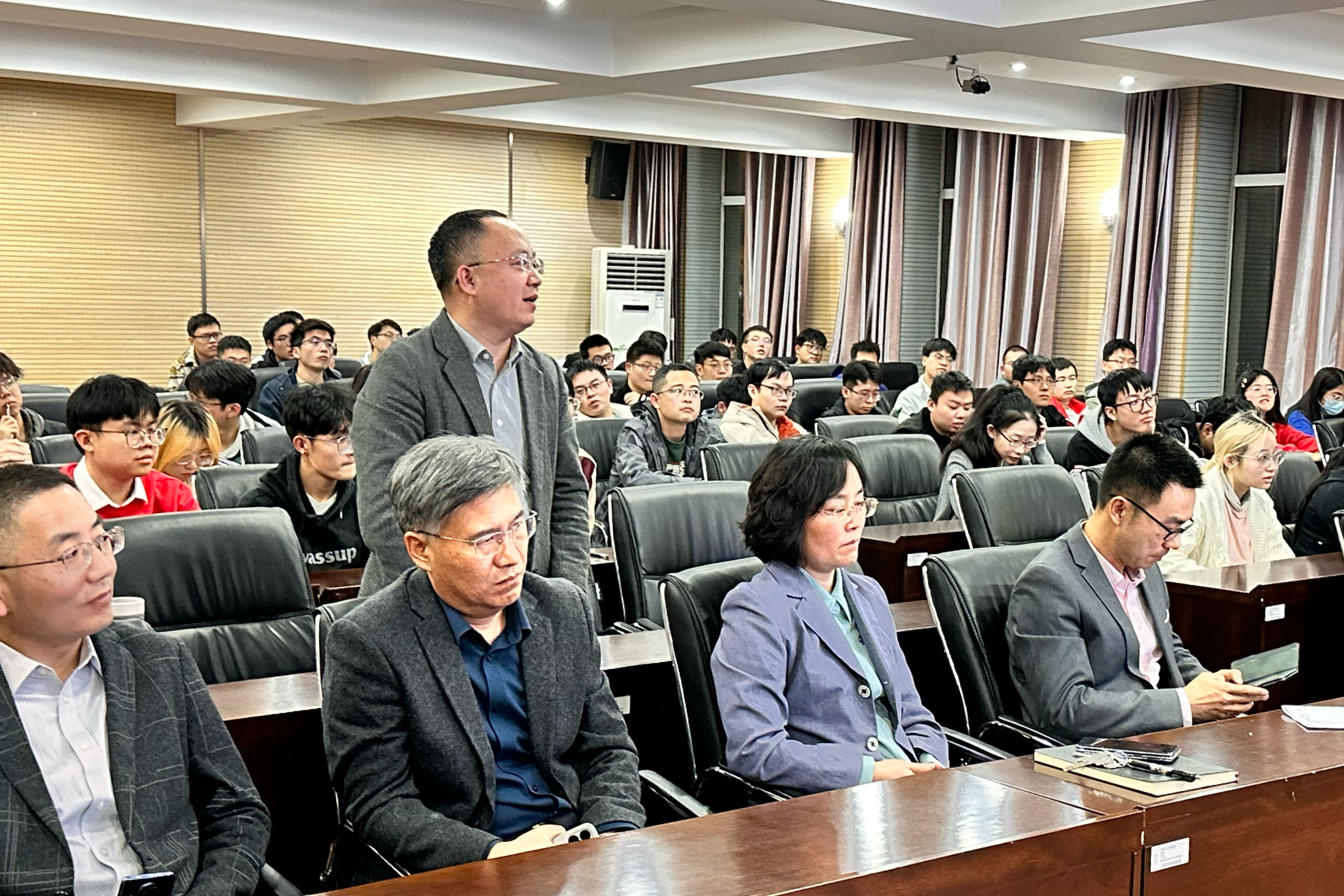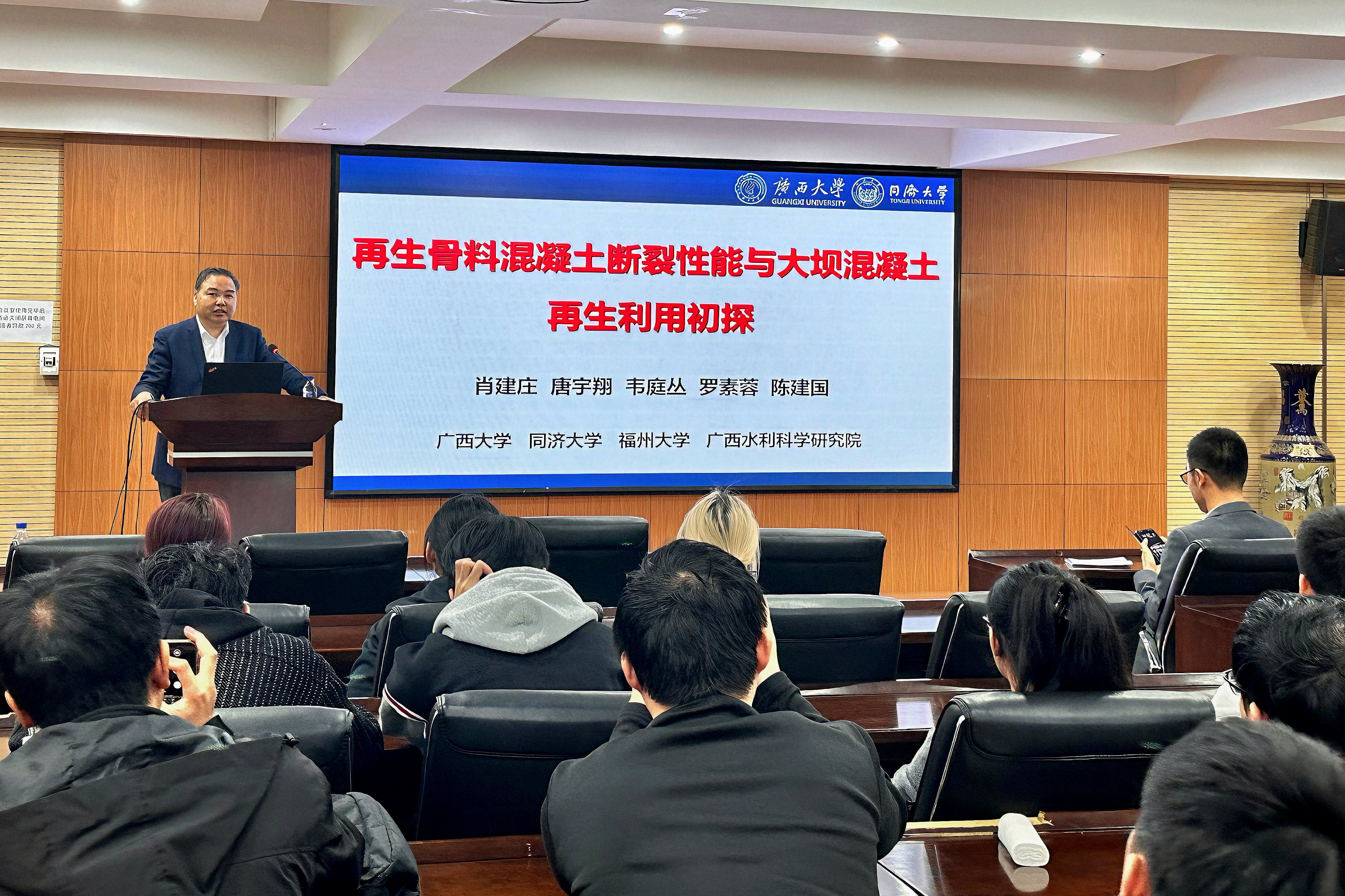 在学术报告中,肖教授介绍了其团队在混凝土再生利用领域的最新研究成果,特别是这些研究成果在广西地区水坝拆除工程中的实际应用案例。他着重强调了再生骨料混凝土在断裂性能上的研究对于推动混凝土材料可持续发展的重要性,同时分享了大坝混凝土再生利用方面的创新尝试和成功案例。肖教授还提出了未来再生骨料混凝土研究方向的创新设想,为在场的师生提供了宝贵的学术启示和思考。学术报告结束后,现场气氛热烈,公司师生纷纷就再生骨料混凝土的性能优化、实际应用中的技术难题以及未来发展趋势等方面,与肖教授进行了深入的互动交流。