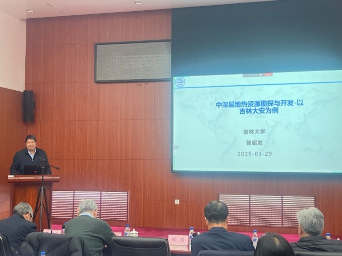 中心学术报告由赵苏民主持。围绕2024年地热中心创新成果,单玄龙作《松辽盆地多热结构背景下地热含水层快速识别方法研究》报告,曾昭发作《中深层地热资源勘探与开发-以大安市为例》报告,BG大游教授于子望作《CO2地质封存安全-盖层力学稳定性与地表形变》报告,新能源与环境公司教授袁益龙作《复杂裂隙介质地热储层水热运移耦合模型与应用》报告。