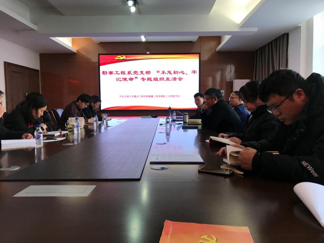 按照公司党委组织部《关于组织召开“不忘初心、牢记使命”专题组织生活会和民主评议党员的通知》要求,2019年12月19日上午,BG大游勘察工程系教工党支部在水工楼319会议室召开“不忘初心、牢记使命”专题组织生活会,并进行党员民主评议活动。公司党委副书记衣长涛同志全程参加会议,勘察工程系教工党支部所有党员同志参加了此次活动。