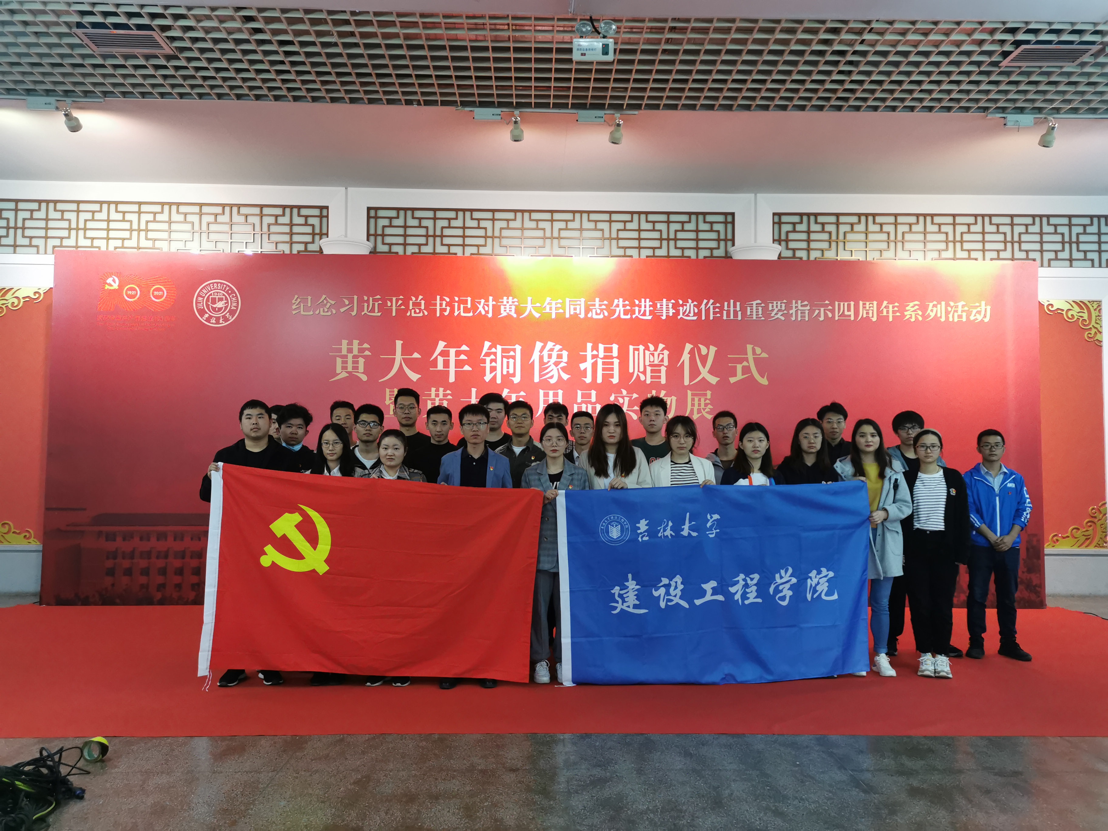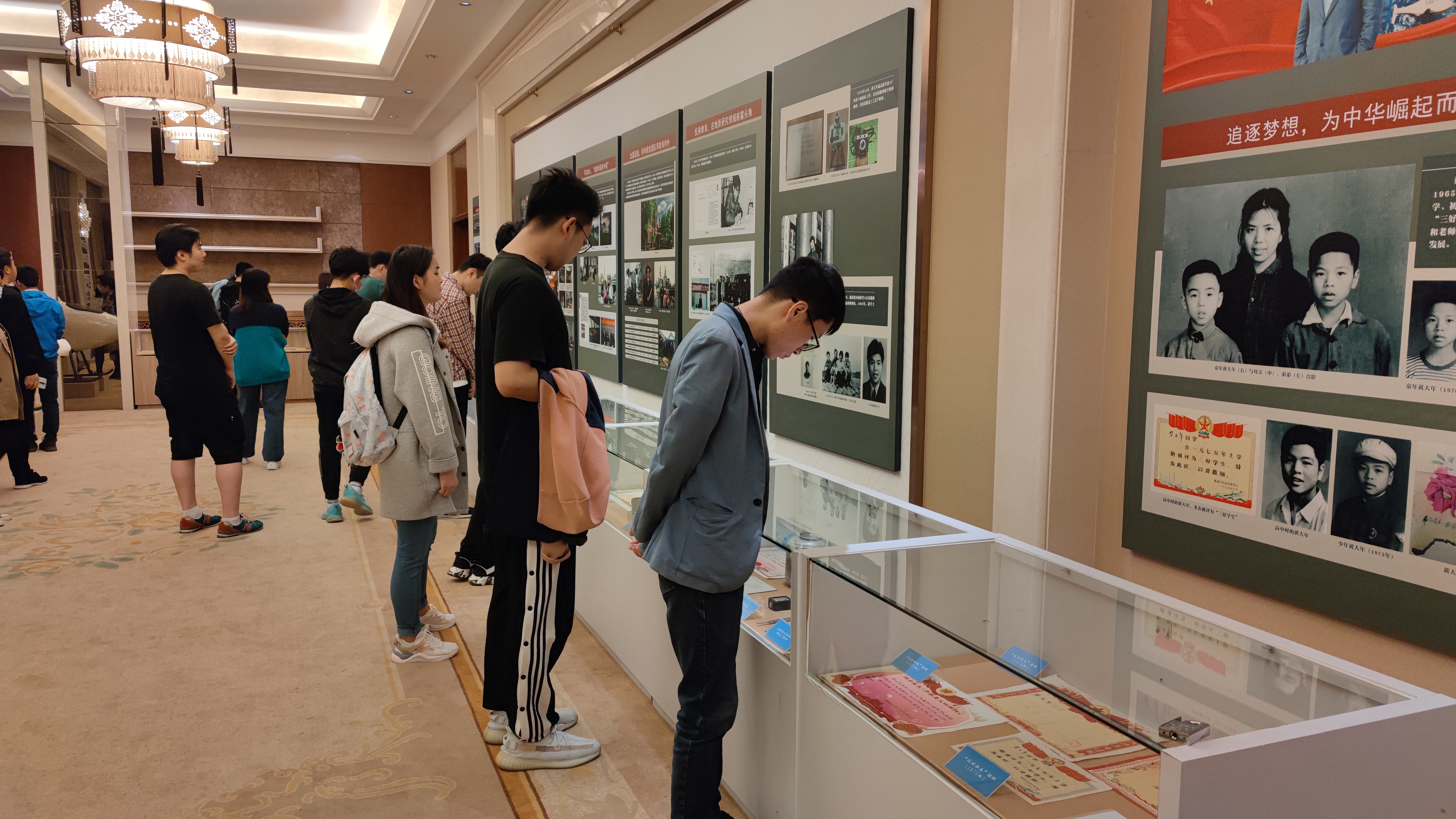 之后,大家来到黄大年生前用品展,馆内征集了黄大年教授生前学习、工作、生活方面的用品40余件,今天是首次开放,在里边我们看到了黄老师的硕士论文和博士论文以及在地质队工作时使用的罗盘、煤炉、照相机等等,在这里我们看到了一位地质青年逐渐成长为战略科学家的故事。最后,大家在馆外合影留念。