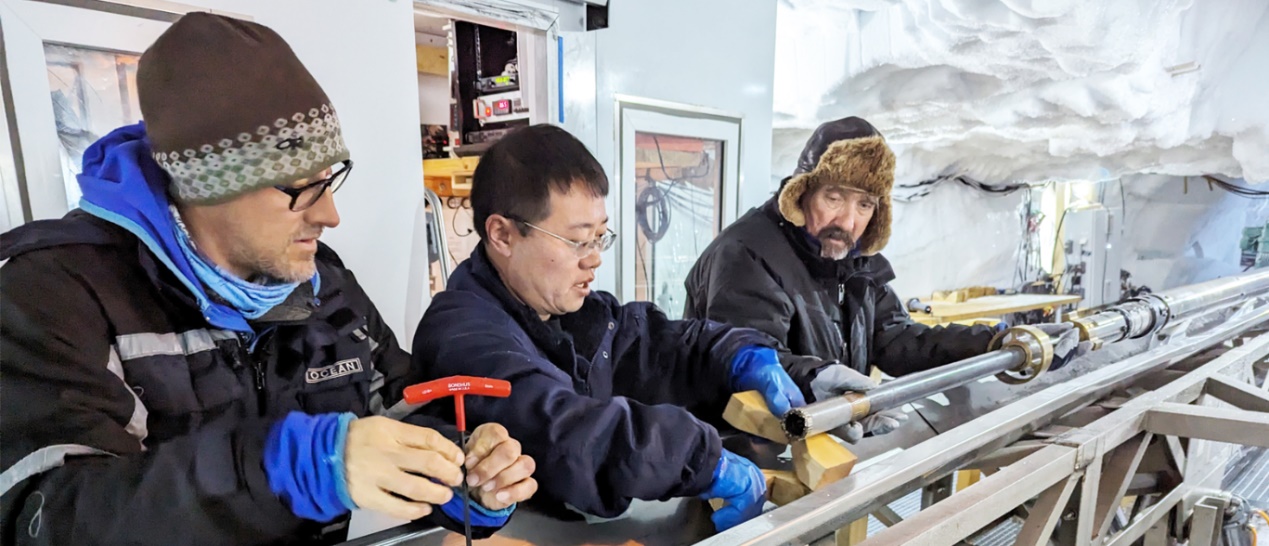 2023年6月10日-7月28日,公司BG大游、极地科学与工程研究院张楠教授受邀,参加丹麦哥本哈根大学组织的北极格陵兰国际合作考察项目“东格陵兰深冰芯计划”(EastGRIP)的北极现场考察,参与实施格陵兰东北冰流的深冰及冰下基岩取芯钻探,并进行冰样处理与钻孔测井,对公司自行研发的极地冰孔测井仪进行测试,公司是唯一受邀的中方单位。此次考察工作季,主要目标是钻穿冰盖,钻取基底暖冰、冰碛物和基岩样品。经过30天的钻探取样工作,张楠教授和现场团队顺利钻穿格陵兰冰盖,终孔深度2658m,钻取冰盖底部冰碛物及基岩样品2.8m,顺利完成现场考察任务,并于7月28日返回国内。