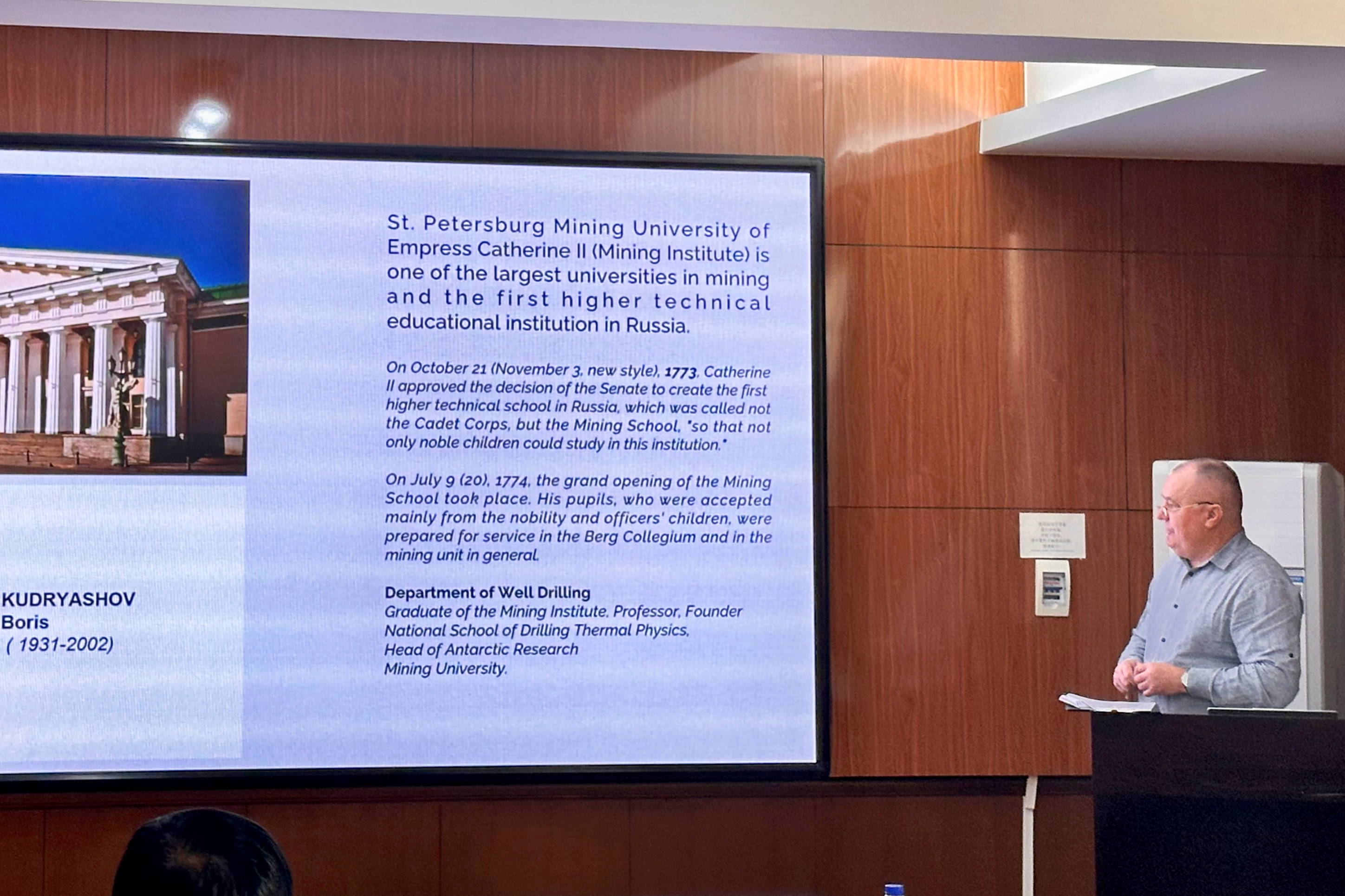 在本次分论坛活动上,Chisliakov教授和Lykov研究员为公司师生呈现了三场深入的学术报告。他们首先回顾了苏联时期超深钻探项目的历史,分享了项目启动、执行过程中遭遇的技术挑战,这些经验对于深化对地球深部结构的理解以及推动钻探技术的发展具有重要价值。接着,专家们详细介绍了在俄罗斯广泛应用的钻井注浆技术,强调了其在提升地下结构的防水性、稳定性和安全性方面的关键作用,这对于隧道和矿井的环保和经济效益至关重要。最后,他们分享了贝加尔钻探项目的核心成果,通过在贝加尔湖不同地质结构中的钻探,获取了宝贵的古气候和地质数据,为研究亚洲乃至全球古气候变化提供了宝贵的参考。这些报告不仅为与会者提供了前沿的学术信息,也为公司未来的研究方向开辟了新的思路。